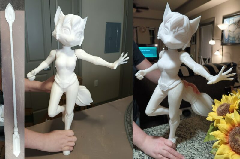 Fan of the site, CardScientist, and his wife, Liana.can.art, decided to create an original Krystal model intended for 3D printing. And with such a model, it was only natural that they would print it at a massive scale. Fully assembled, this figurine will be 21 inches tall not counting the base, an approximate 1/3rd scale model of Krystal! They still have final sanding, assembly, and painting to do, but as you can see, they're well on their way to the finished product.